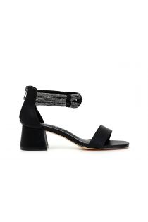 Sandales fermées derrière avec chevillère en micro-strass sur talon moyen.