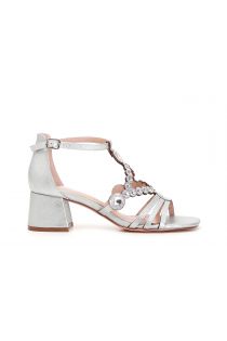 Sandales fermées derrière avec motif bijou en forme de losange devant sur talon moyen.