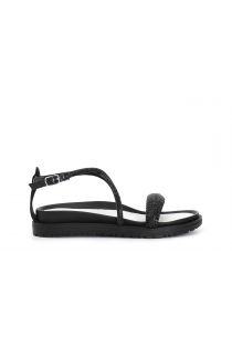 Sandales croisées avec strass constituées d'une bande plate et d'un croisement sur le cou-de-pied qui se ferme avec une bride.