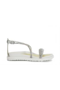 Sandales croisées avec strass constituées d'une bande plate et d'un croisement sur le cou-de-pied qui se ferme avec une bride.