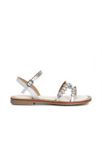 Sandales modèle gilda en cuir lamé avec accessoires en strass. la doublure et la semelle intérieure sont en cuir. le talon est haut h. 1.5 cm. chaussure confortable même après plusieurs heures d'utilisation et parfaite à combiner avec plusieurs looks.