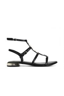 Sandales en cuir de style gladiateur avec accessoire doré. double bride réglable.