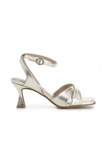 Sandales métallisées croisées et bride à la cheville. talon h. 70 mm