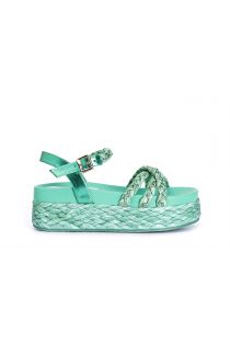 sandales modèle gilda avec trois bandes de raphia et de strass turquoise