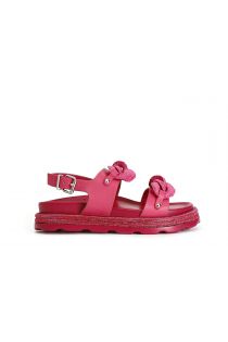 Sandales monacales avec double chaîne et effet couleur block. confortable fussbett et insert latéral en strass sur la semelle. talon haut de 40 mm.