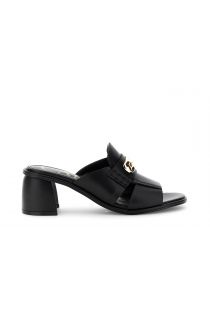 Sandale en similicuir avec détails dorés design minimaliste et confort optimal. semelle intérieure en cuir et talon bloc de 6 cm pour un look élégant et polyvalent. la chaussure idéale pour compléter toutes vos tenues du quotidien.