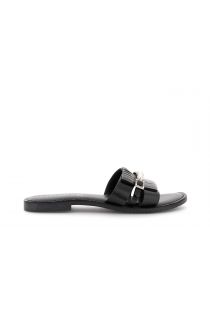 sandales plates en cuir avec boucle bijou black