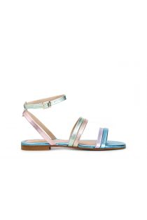 Sandales plates en similicuir métallisé multicolore