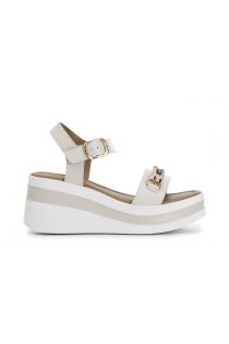 Sandales en nappa avec accessoire en strass. semelle compensée large et confortable avec semelle intérieure rembourrée gainé en nappa. bride à boucle réglable à la cheville.