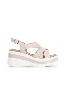 Sandales en nappa avec croisement. semelle compensée large et confortable avec semelle intérieure rembourrée gainé en nappa. bride réglable.