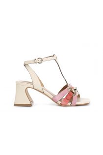 Sandales « t » en cuir et daim bicolores avec attache. talon h. 70 mm