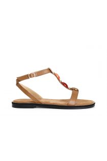 Sandales "t" en cuir avec pierres décorées. la doublure et la semelle intérieure sont en cuir. chaussure de forme légèrement arrondie. le talon mesure 2.5 cm.