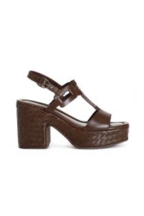 sandales "t" en cuir compensé tressé dark brown