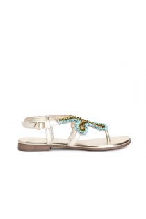 Sandales tongs avec broderie et applications. la doublure et la semelle intérieure sont en cuir. le talon mesure 2 cm de haut. confortable à porter et facile à assortir.