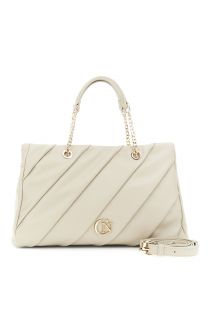 Sac cabas en similicuir avec plis sur le devant, poche zippée au dos et séparateur intérieur. Anses rembourrées avec chaîne métallique ornée du logo Café Noir et bandoulière amovible.