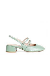 slingback en cuir verni avec deux boucles à lacets à l'arrière sage