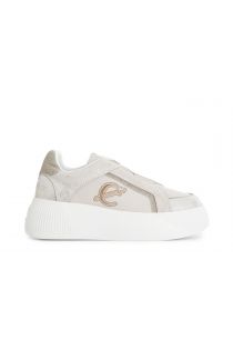 Sneakers slip-on en daim laminé. logo gaufré brodé sur le côté avec le monogramme cafènoir. semelle haute de 55 mm