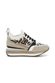 Slip-on en maille élastique avec insertions en cuir et en daim. Détails glitters et lacets élastiques. Semelle surélevée.