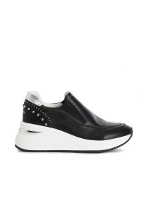 Slip-on pour femme en cuir recouvert de clous et de strass. assise plantaire interne. un choix pratique et fonctionnel pour ceux qui recherchent le confort sans sacrifier le style.