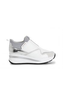 Silp-on en cuir enrichi d'inserts laminés et d'une bande élastique qui facilite l'ajustement. semelle surélevée bicolore avec logo embossé.