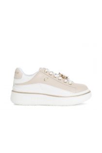 Baskets à lacets pour femmes en cuir recouvert avec plateforme de 3 cm. chaussure avec accessoire amovible particulier sur les lacets. bout rond. assise plantaire interne. semelle de 4.5 cm de hauteur. parfait pour ceux qui veulent allier confort et se démarquer à chaque occasion de la journée.