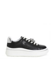 Baskets à lacets pour femmes en cuir recouvert avec plateforme de 3 cm. chaussure avec accessoire amovible particulier sur les lacets. bout rond. assise plantaire interne. semelle de 4.5 cm de hauteur. parfait pour ceux qui veulent allier confort et se démarquer à chaque occasion de la journée.