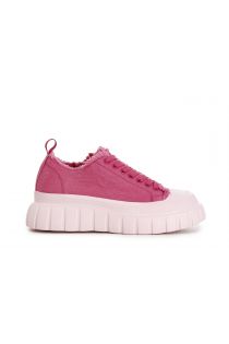 Sneakers à lacets en tissu avec franges semelle surélevée décorée d'un motif rayé. modèle qui se distingue par un embout en caoutchouc qui décore la chaussure.