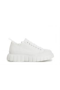 Sneakers à lacets en tissu avec franges semelle surélevée décorée d'un motif rayé. modèle qui se distingue par un embout en caoutchouc qui décore la chaussure.