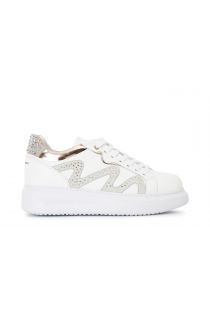 Sneakers agrémentées de cabochons sur un détail latéral et strass sur le contrefort. empeigne et semelle intérieure en cuir. fermeture à lacets. semelle remontante.