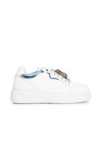 sneakers avec insert lamé et accessoires bijou amovibles white/turquoise