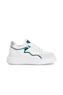 sneakers en cuir avec détail miroir sur semelle remontante mint combo