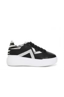 Sneakers total white en cuir avec détails en poulain tacheté derrière