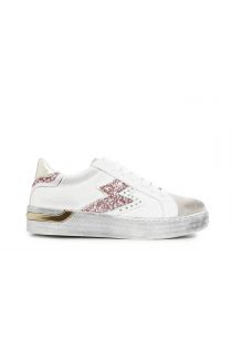 Sneakers en cuir avec semelle effet vintage. l’empeigne en cuir est enrichie d'inserts en tissu avec des paillettes ou des détails motif animalier selon la variante de couleur