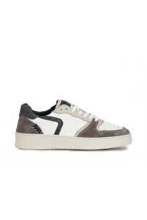 Sneakers en cuir et daim, semelle remontante cousue sur l’empeigne