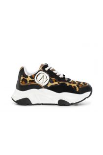 Sneakers en cuir et poils de poney avec insertions laminées enrichies d'un important monogramme CN métallique. Le logo est répété en entier sur la semelle de course bicolore et une impression laminée d’un bel effet l'entoure.