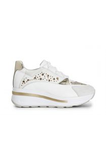 Sneakers en cuir et motif strass thermosoudés à l’avant et motif latéral. semelle compensée bicolore de 40 mm avec logo gaufré.