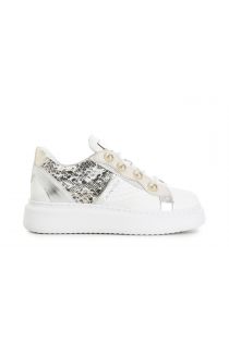 Sneakers en cuir avec cabochons semi-sphériques détails latéraux imprimé python et semelle remontante cousue sur l’empeigne. lacets élastiques.