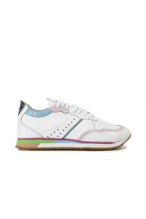 Sneakers en cuir multicolore avec semelle de course très légère. des cuirs aux teintes pastel variées et des matériaux différents s'associent pour créer un modèle polyvalent et gracieux véritable emblème du printemps.