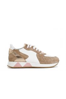 Sneakers en cuir avec semelle arrondie caractérisée par un jeu d'inserts de plusieurs matières sur des nuances poudrées.