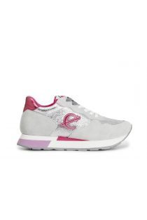 Sneakers en daim et paillettes. logo latéral gaufré avec le monogramme cafènoir. fermeture par lacets de couleur. semelle en caoutchouc multicolore.