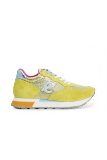Sneakers en daim et paillettes. logo latéral gaufré avec le monogramme cafènoir. fermeture par lacets de couleur. semelle en caoutchouc multicolore.
