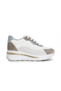Sneakers en cuir daim et inserts en tissu. semelle compensée bicolore de 40 mm avec logo gaufré.