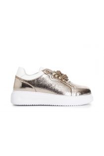 Sneakers avec effet lamé et accessoires amovibles. empeigne et semelle intérieure en cuir. fermeture à lacets. semelle remontante.
