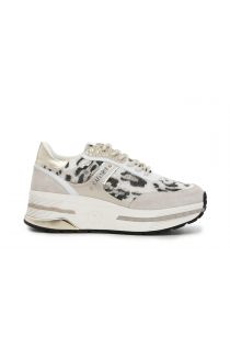 Sneakers en similicuir et cuir avec des détails animaliers léopard. Semelle de course avec logo CN sur l'extérieur de la semelle.