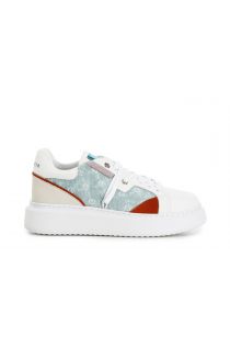 sneakers en tissu avec logo et cuir sur semelle remontante multi turquoise