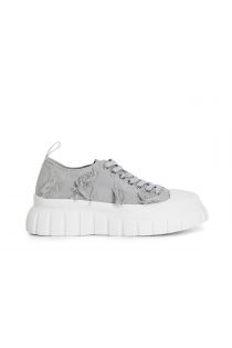 Sneakers à lacets en tissu effiloché bout en caoutchouc. fermeture par lacets assortis à la chaussure. semelle surélevée de 55 mm décorée d'un motif rayé.