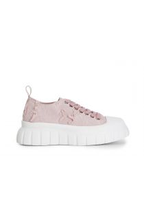 Sneakers à lacets en tissu effiloché bout en caoutchouc. fermeture par lacets assortis à la chaussure. semelle surélevée de 55 mm décorée d'un motif rayé.