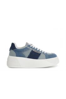 Sneakers en tissu multi jeans. fermeture à lacets. semelle haute de 55 mm.