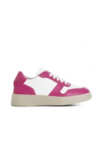 Sneakers femme à lacets en cuir bicolore. semelle intérieure en cuir.