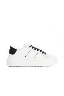 Sneakers femme en similicuir. encolure et lacets colorés.